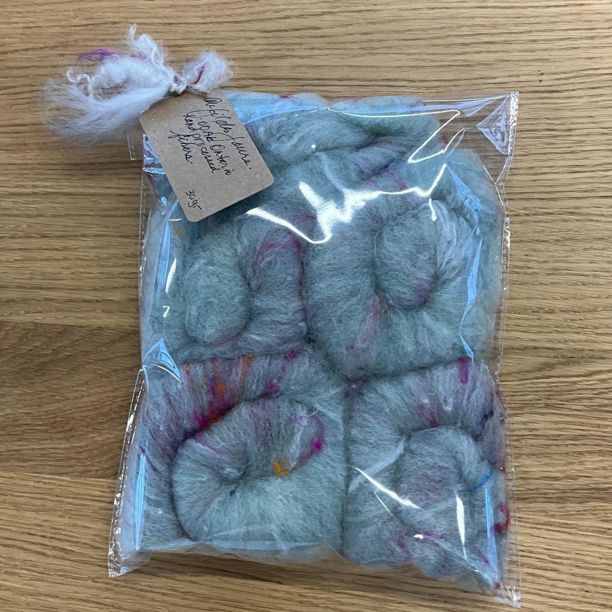 These angora rolags are hand blended by Michelle of Au Fil des Jours, right here in Waterloo. Each blend is unique (see the content descriptions below), however, each contains some English Angora from her pet bunny Sova.